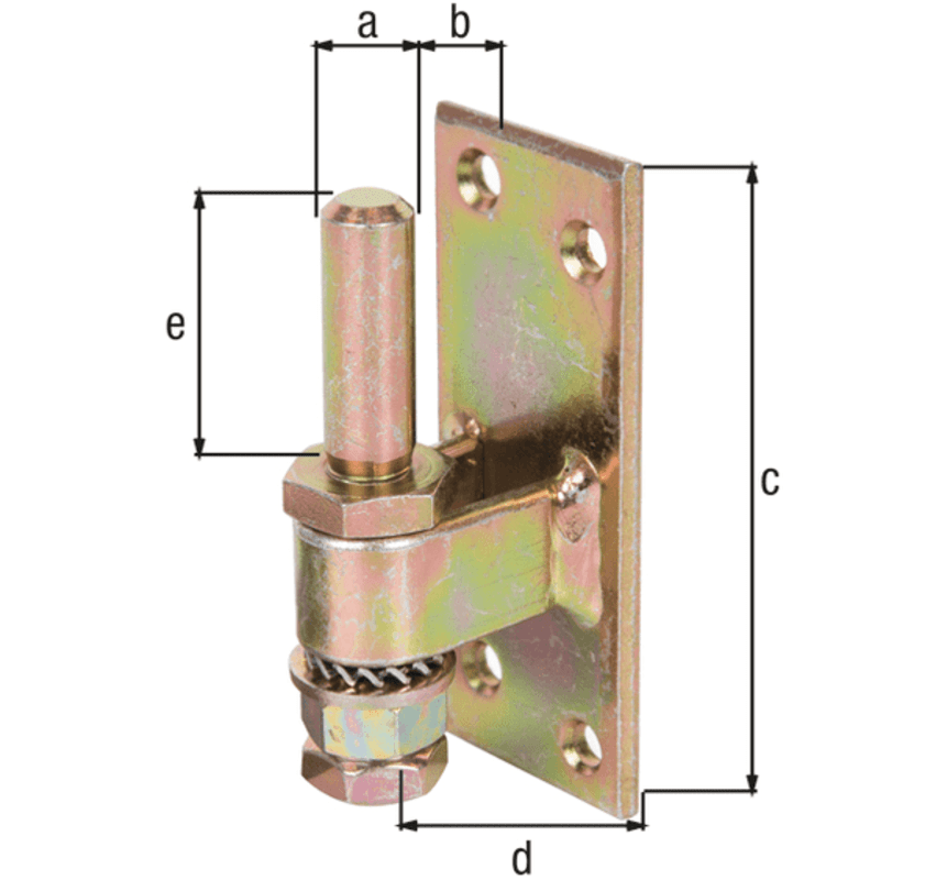 GAH Alberts Kloben; Ausführung: verstellbar; Material: Stahl; Oberfläche: galvanisch gelb verzinkt; Befestigungsart: zum Aufschrauben; Basis: Kloben; Form: kantig; Anzahl Schraublöcher: 4St.; Schraublochdurchmesser: 7mm; Schraublochausführung: Senkkopf; Material Haken: Stahl; Dornstärke: 13mm; Plattenbreite: 40mm; Plattenstärke: 4,5mm; Abstand Platte und Dorn min.: 5mm; Abstand Platte und Dorn max.: 23mm; Einsatzbereich: Ladenband; Farbe: gelb; Materialstärke: 4,5mm; Verstellbereich min.: 5mm; Verstellbereich max.: 23mm; Dornlänge: 40mm; Plattenhöhe: 100mm