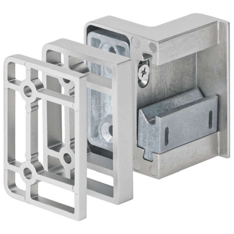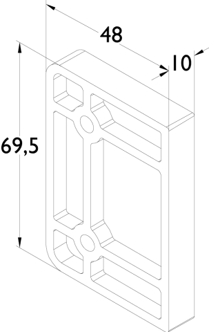 Wandabstandsplatte zu Gegenkasten 6709, 10 mm hoch, ohne Befestigungsschrauben, links/rechts verwendbar, Oberfl. 20 (Edelstahlfarben)
