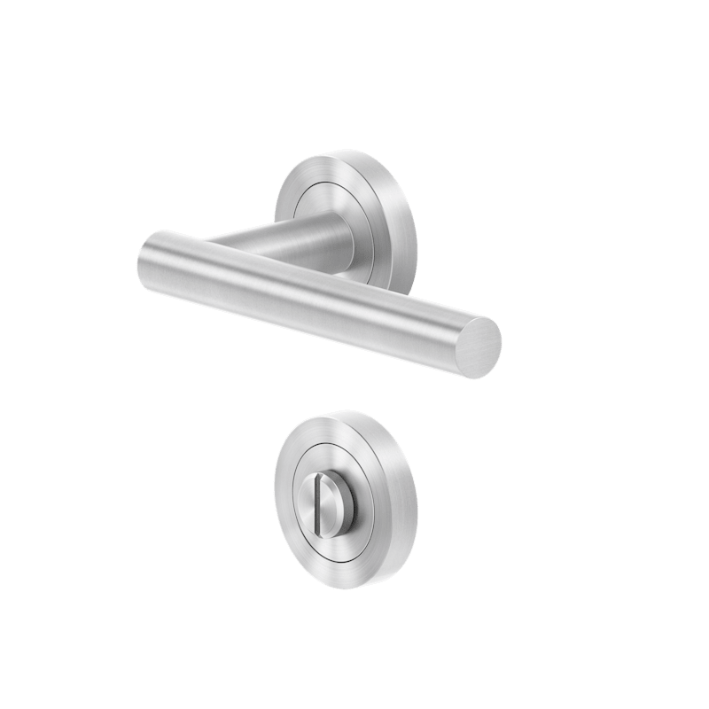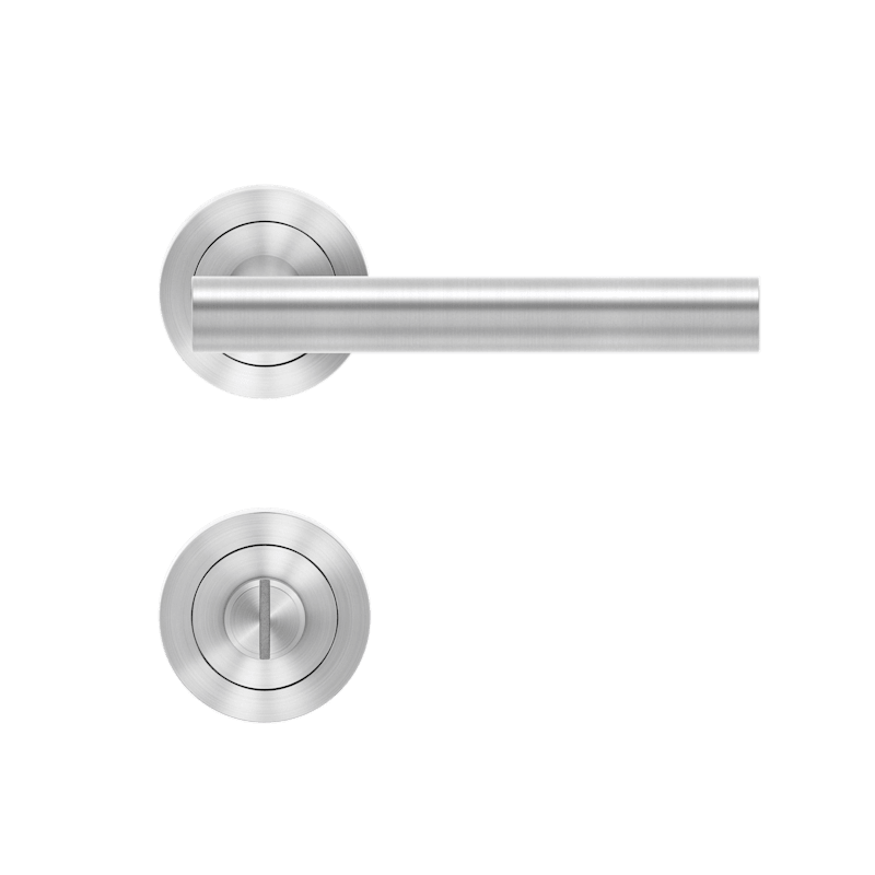 Innentür-Rosettengarnitur ER21 Manhattan, für Standardtüren nach DIN EN 1906, Benutzungskategorie 3. Mit patentierte 3teiliger Schraubrosette kantig, mit 7 mm Stütznocken und Gleitlager aus Nylon, fest drehbar gelagert mit Hochhaltefeder, durchgehende M4 Schrauben, unsichtbar befestigt, 8 mm exzentrisch gebohrter Hohlstift. Griffdurchmesser: 19 mm.