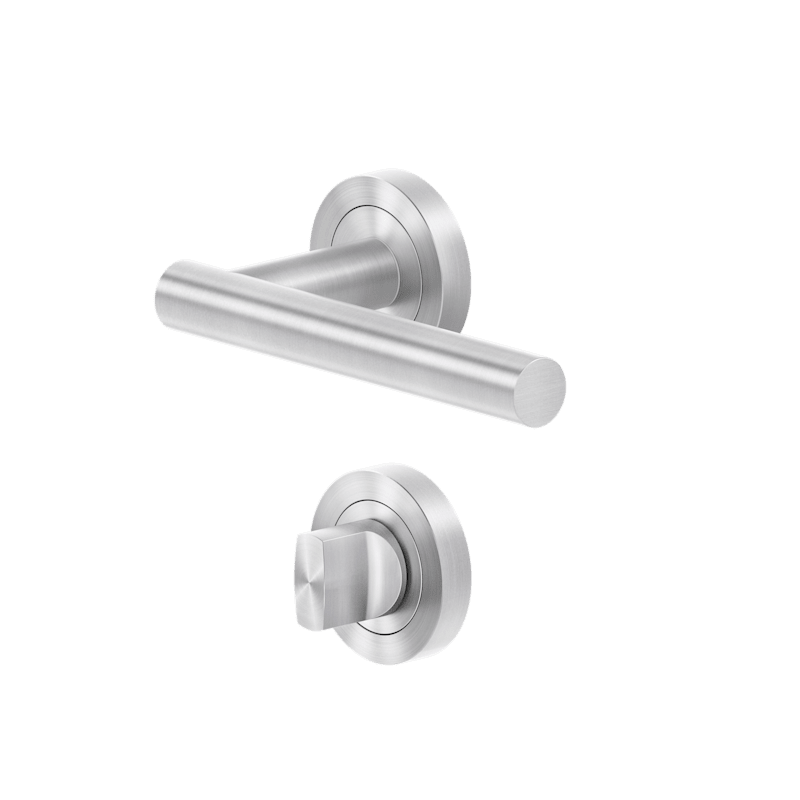 Innentür-Rosettengarnitur ER21 Manhattan, für Standardtüren nach DIN EN 1906, Benutzungskategorie 3. Mit patentierte 3teiliger Schraubrosette kantig, mit 7 mm Stütznocken und Gleitlager aus Nylon, fes