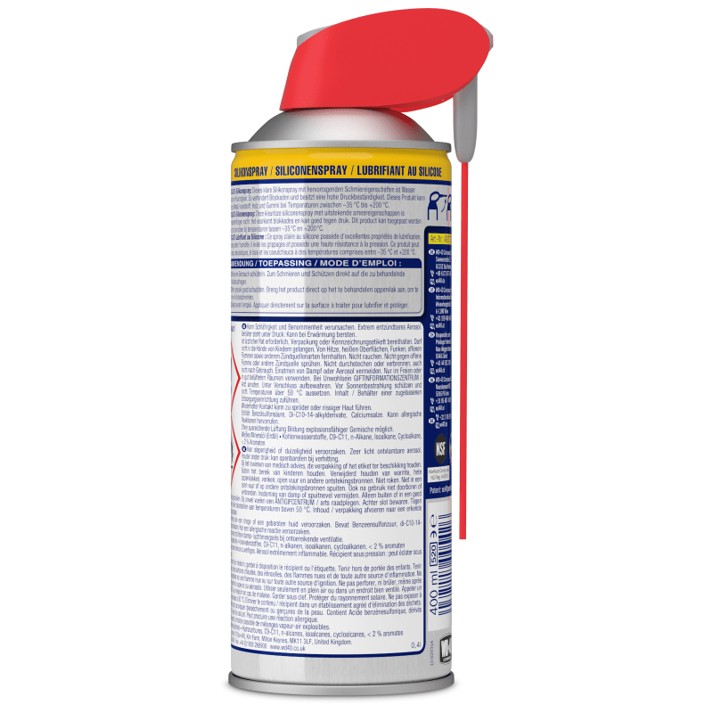 Ob Metall, Kunststoff oder Gummi – mit dem farblosen Hochleistungs-Silikonspray läuft alles wie geschmiert, auch unter Druckbelastung. Es weist Feuchtigkeit ab und kann selbs