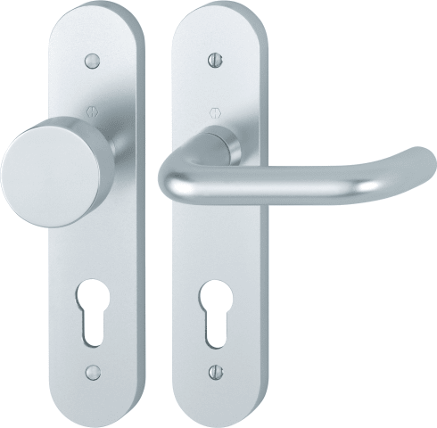 HOPPE Wechselgarnitur Paris 58/3056RF-3/138L, Langschild, oval, Profilzylinder gelocht, Entfernung 72mm, Vierkant 8mm, DIN Rechts, 40, Türstärke 40 - 40mm, mit Stütznocken, naturfarben eloxiert, mit R
