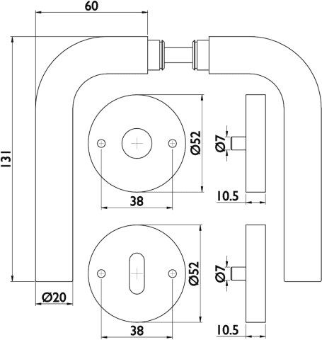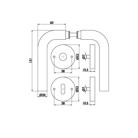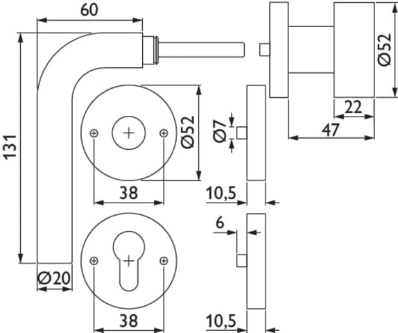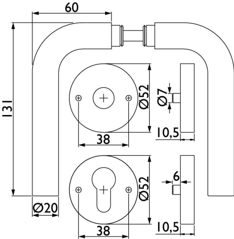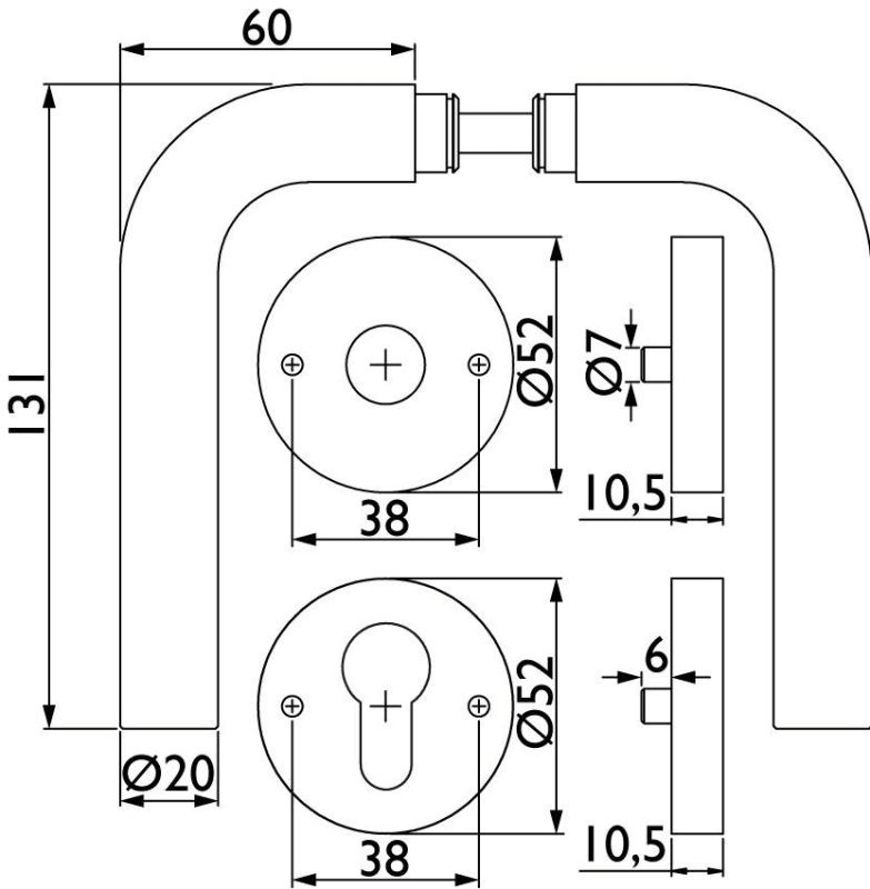 Innentürgarnitur Basic 03, L-Form, mit runden Rosetten. Edelstahl matt.