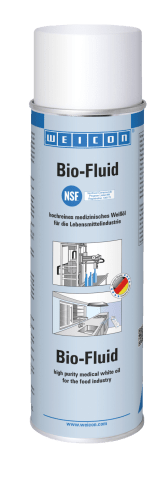 WEICON Bio-Fluid ist ein harz- und säurefreies medizinisch reines Weißöl, das speziell zur Schmierung und Pflege entwickelt wurde. Es ist wasserhell, lösemittelfrei, geruchs- und geschmacksneutral, kriechfähig sowie wasserabweisend und hat eine NSF-Zulassung. Bio-Fluid mindert Reibung und Verschleiß, unterdrückt Quietschgeräusche, schützt vor Korrosion und löst Schmutz und Rost. Es wird zur Schmierung, zum Schutz und zur Pflege von Präzisionsmechanismen, als Sprühöl für Produktions- und Abfüllanlagen und als Schmierstoff an Abfüll- und Verpackungsanlagen verwendet und darf überall dort eingesetzt werden, wo ein gelegentlicher, technisch unvermeidbarer Kontakt mit Lebensmitteln oder deren Verpackung auftritt. WEICON Bio-Fluid wurde für Anwendungen in der Nahrungsmittel-, Getränke-, pharmazeutischen und kosmetischen Industrie entwickelt.