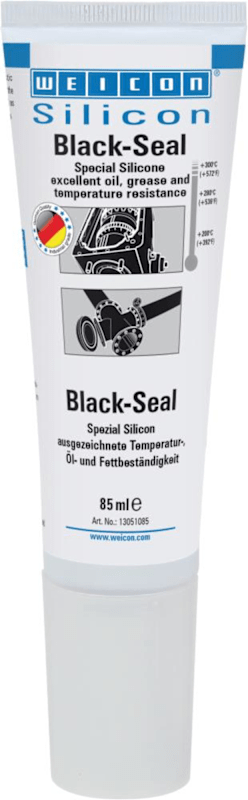 Weicon® Black-Seal Spezialsilikon• Hochtemperaturbeständig (+280°C/+536°F), lösemittelfrei, haftstark, druckbeständig, alterungsbeständig und extrem elastisch (Bruchdehnung von ca. 300%) • Für Ver