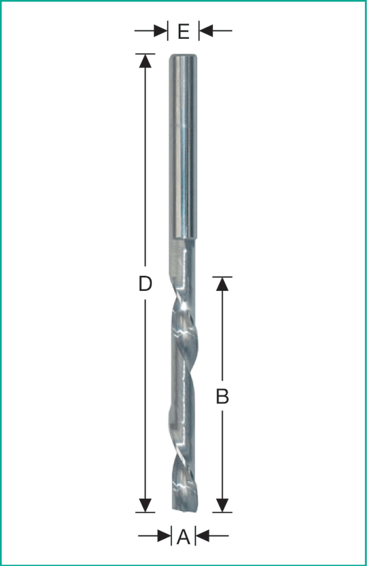 Einzahnfräser VHM - Spezialausführung - Linksdrall - Spanauswurf nach unten Mit Bohrspitze, für die PVC-Bearbeitung