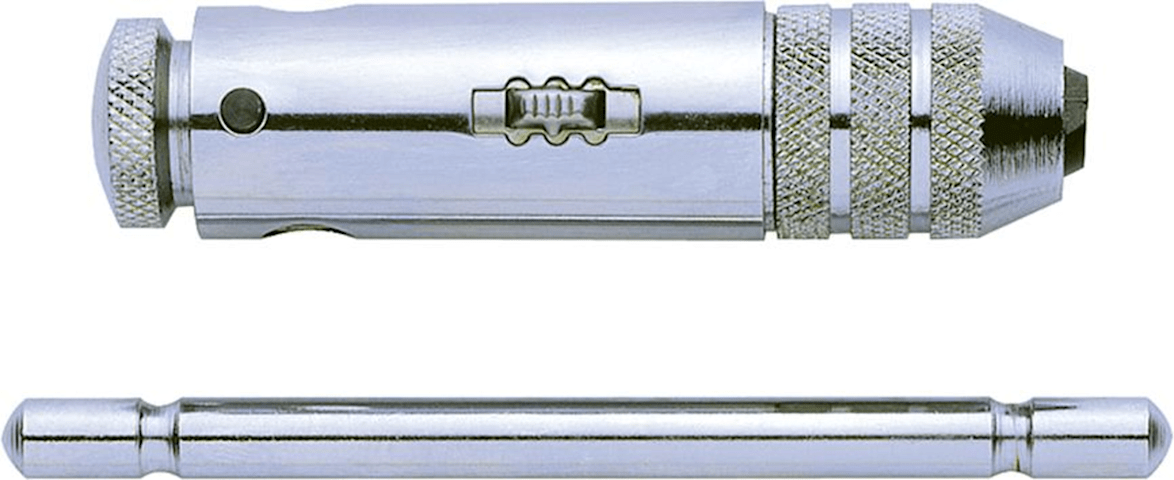 Werkzeughalte • Verchromte Ganzstahlausführun • Knarre umschaltbar für Rechtsgang, Linksgang oder fes • Mit gehärteten, parallelspannenden, auswechselbaren Backe • Verstellbarer Quergrif • Zum Spannen von 4-kant-Schäften