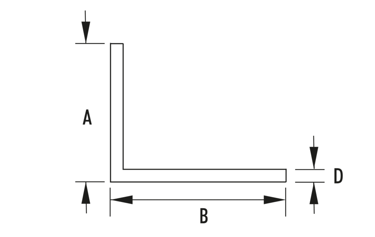 Winkelprofile 2,5 und 3,0 mm stark, ungleichschenkelig, ohne abgerundete Kanten.
