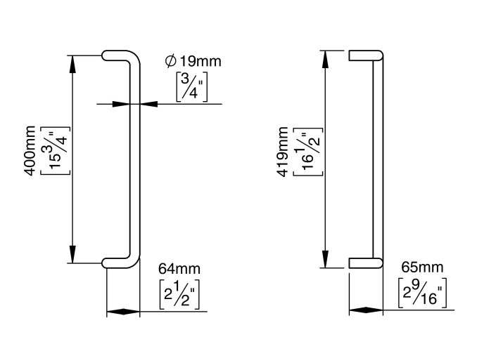 Knud Holscher collection, pull handle 19, cranked, 400mm, thread M8. Manufactured in the highest quality marine grade, AISI 316 stainless steel, protecting against high levels of corrosion. Certified in accordance with EN 1906 to ---A----. 20-year warranty.