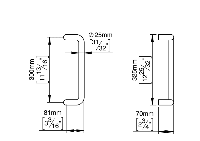 Knud Holscher collection, pull handle 25, cranked, 300mm, thread M10. Manufactured in the highest quality marine grade, AISI 316 stainless steel, protecting against high levels of corrosion. Certified in accordance with EN 1906 to ---A----. 20-year warranty.