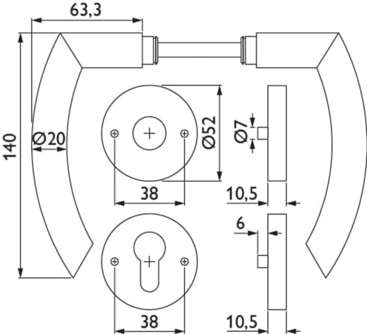 ZT-Drückergarnitur 1804 BASIC 04, mit Rosetten 2036 KB, Ausf.: PZ, mit Rückholfeder, Türstärke 38 - 42 mm, Oberfl. 61 (Edelstahl poliert)