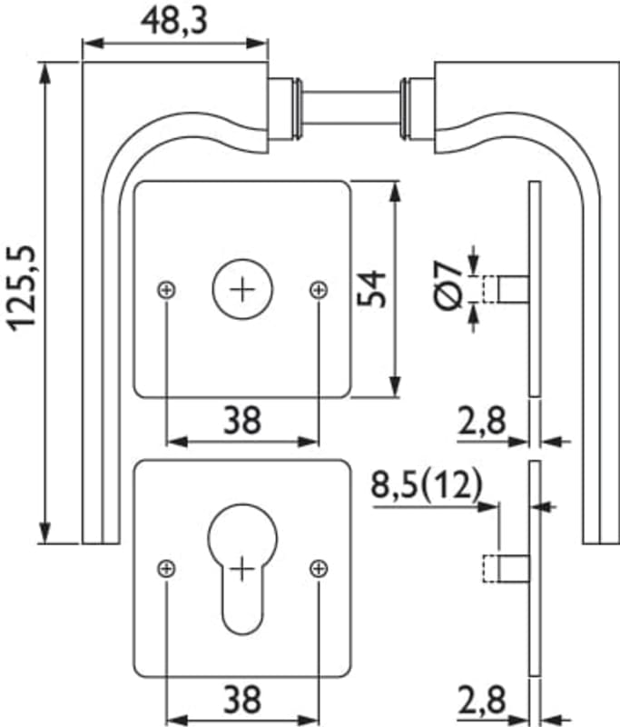 ZT-Drückergarnitur 1693 INVITE, mit MAGCLIP Rosetten 2611 FL & RHF, Ausf.: PZ, fest/drehbar, mit Rückholfeder, Tst. 38 - 45 mm, Oberfl. 60 (Edelstahl matt)