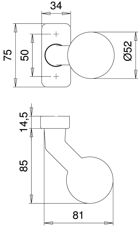 EDI, Zimmertür-Knopf, Abdeckung: auf kantige Rosette, Vierkant: 8 mm, DIN-Richtung: DIN Links-Rechts, Modell: Keto, Modellnummer: 2034/4010, Material: Aluminium, Farbton: naturfarbig, Oberfläche: eloxiert, Befestigungsart: verdeckt verschraubt, Befestigungstechnik: ohne Stütznocken, Material Unterkonstruktion: Stahl, Stärke Abdeckung: 14 mm, Befestigungssystem: Stiftbefestigung, Lagerung: drehbar, Türart: Innentüren, Türwerkstoff: Holz, Länge: 75 mm, Breite: 34 mm, Knopfform: gekröpft, Kugelform, Knopfdurchmesser: 52 mm, Knopfhöhe: 103 mm, Montageart: einseitige Montage, Ausführung: mit Knopf K4, Knopfbefestigung: Vollstift