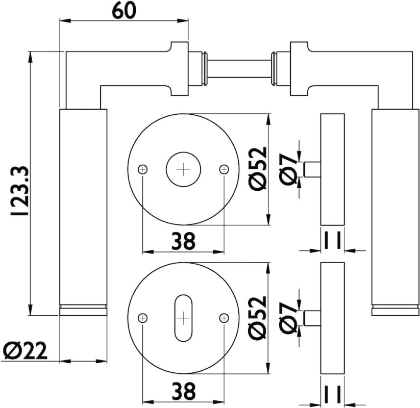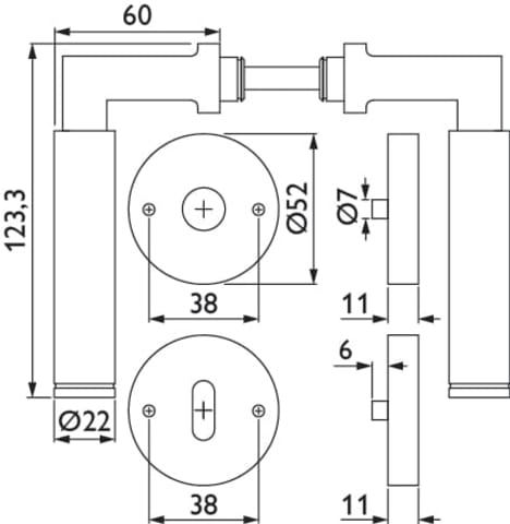 Hermat Drückergarnitur 1831/2336.SC,Ros.,rd.,BB,8,ER,TS 37-47