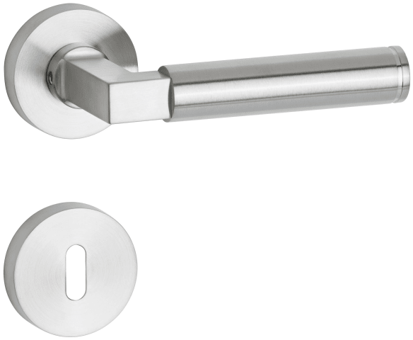 ZT-Drückergarnitur 1831 INFINITY, mit Smart-Clip Rosetten 2336 SC & RHF, Ausf.: BB, fest/drehbar, mit Rückholfeder, Tst. 37 - 47 mm, Oberfl. 60 (Edelstahl matt)