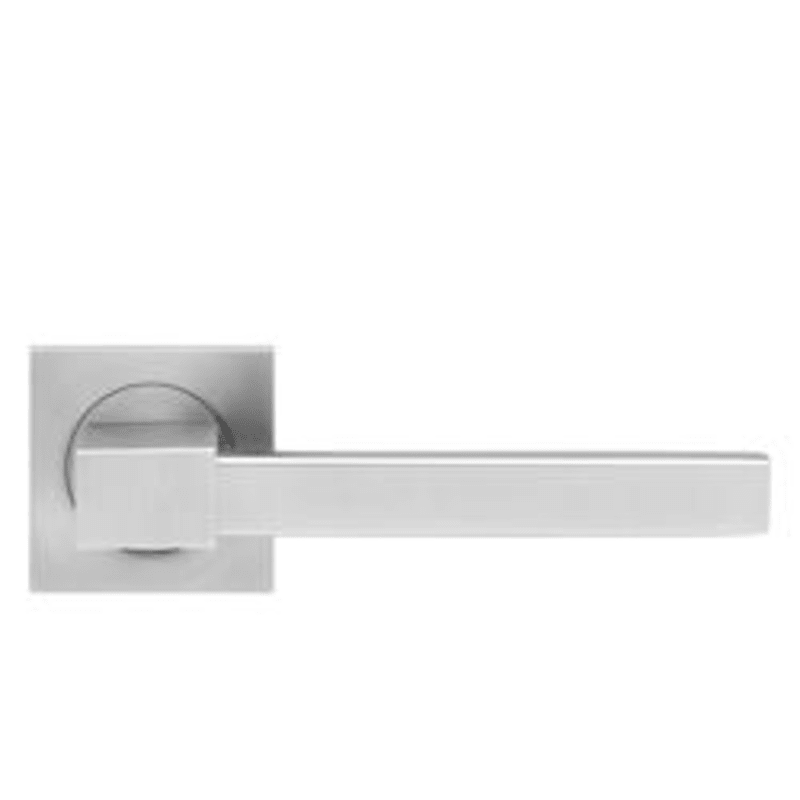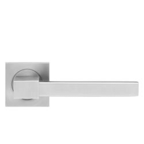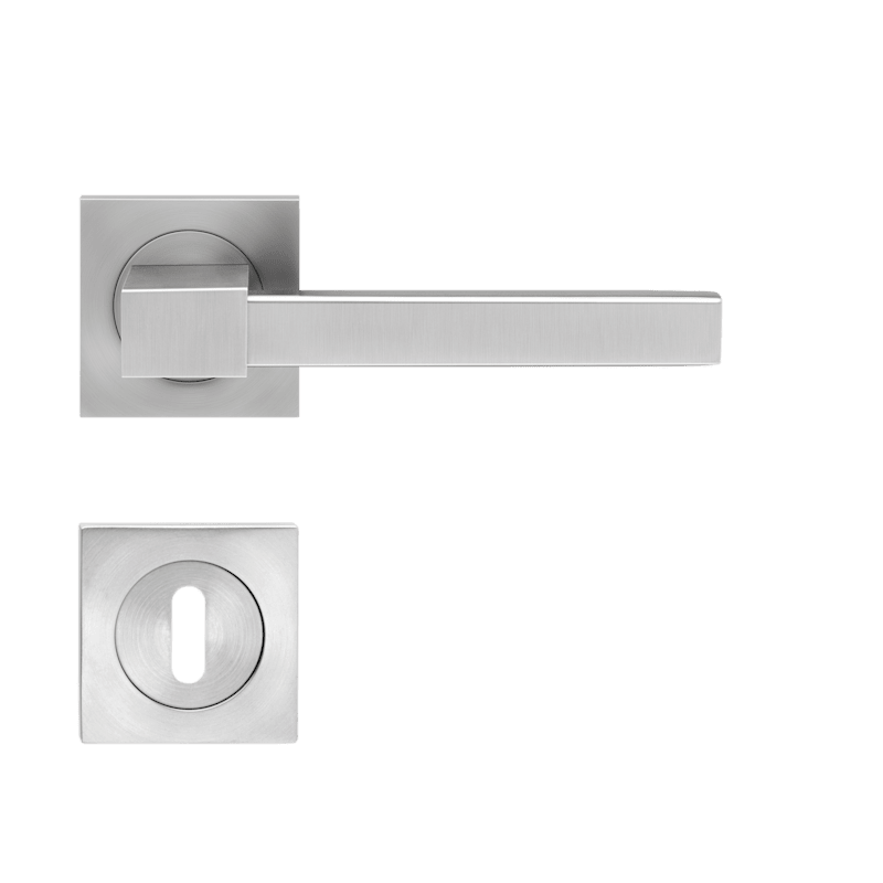 Drückergarnitur Portland ER47Q, für Standardtüren nach DIN EN 1906, Gebrauchskategorie 3. Patentierte 3teilige Schraubrosette, kantig, quadratische Version mit 7 mm Stütznocken und Gleitlager aus Nylo