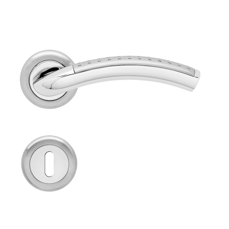 Innentür-Rosettengarnitur R40 Phoenix, für Standardtüren. Mit patentierter 3-teiliger Schraubrosette abgerundet, mit 7 mm Stütznocken und durchgehenden M4 Schrauben, unsichtbar befestigt Gleitlager au